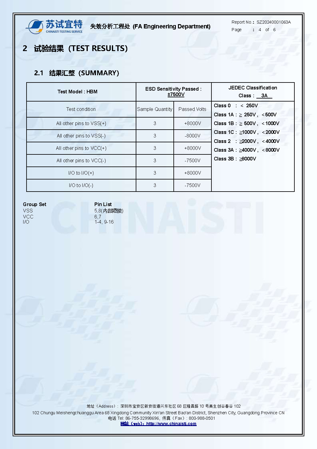 ESD test report