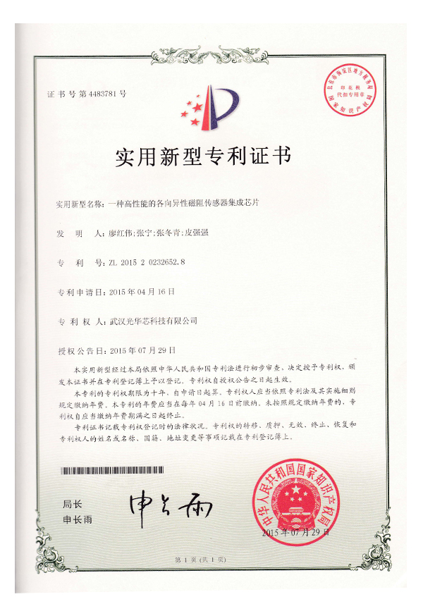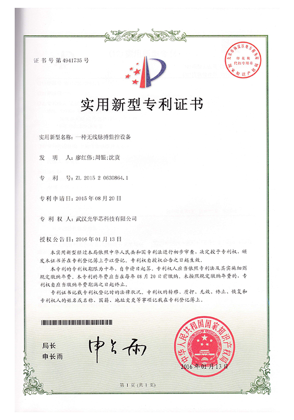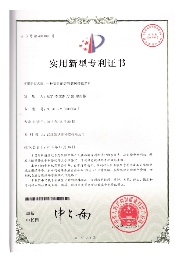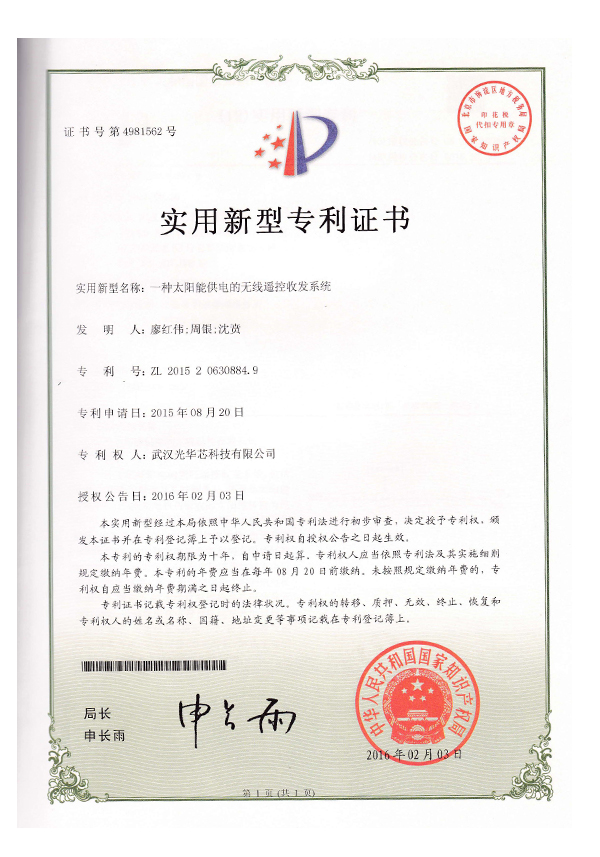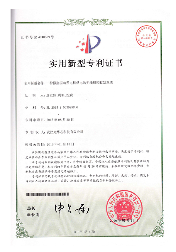 實(shí)用新型專利證書