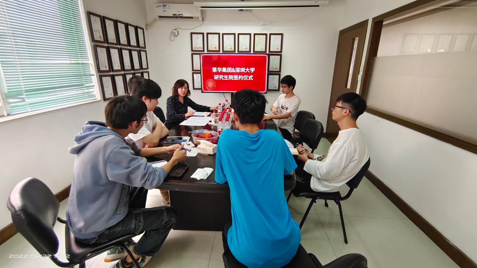 4月22日下午,菉華集團與深圳大學研究生院合作簽約儀式在菉華集團會議室舉行,菉華集團總經理張總,深圳大學機電與控制工程學院副院長潘劍飛先生等出席些次簽約儀式。