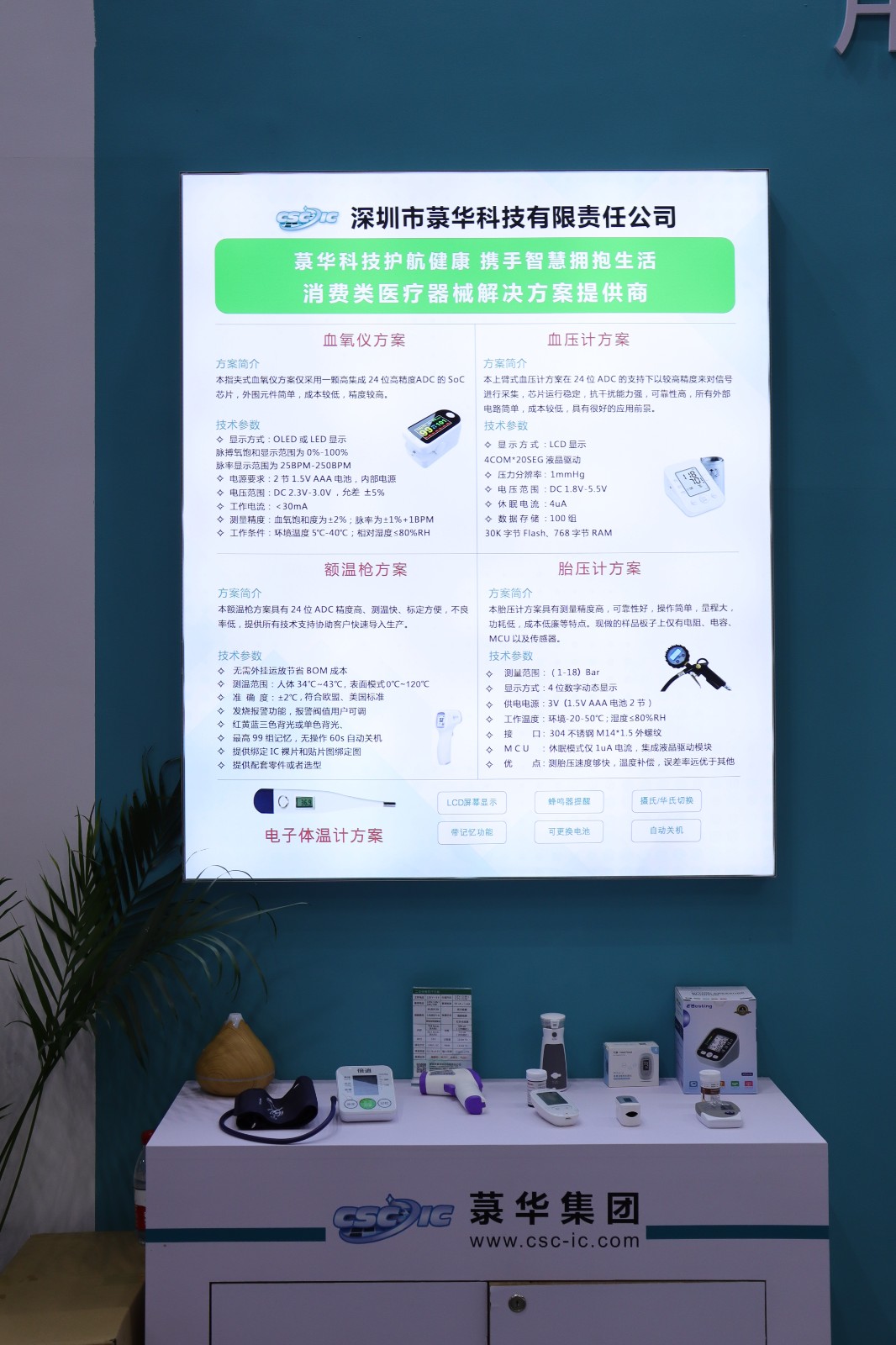 本次展會中,菉華集團(tuán)展示了5大系列的產(chǎn)品,小家電Touch MCU、音頻芯片、Mini LED與電子煙、BLDC、消費類醫(yī)療器械方案,其中主推產(chǎn)品是電容式觸控芯片和音頻系列芯片。觸控系列芯片采用COMS工藝制造,內(nèi)建穩(wěn)壓和去抖電路,高可靠性、高靈敏、超低功耗,寬工作電壓,專為取代光感和傳統(tǒng)按鍵開關(guān)而設(shè)計,產(chǎn)品應(yīng)用有空氣炸鍋、加濕器、凈化器、霧化器、車載支架、座位調(diào)節(jié)開關(guān)、空調(diào)/房車控制板、報警器、TWS耳機(jī)、手環(huán)、手表、各種智能燈具、智能門鎖、智能眼鏡、眼部按摩儀、電子秤等等。音頻系列芯片產(chǎn)品,包括USB數(shù)字音頻SoC、CODEC、ADC、DAC。廣泛應(yīng)用于PC及周邊外置設(shè)備、安防、車載、商業(yè)、影像電機(jī)、電子數(shù)碼等領(lǐng)域。作為國內(nèi)首批專業(yè)從事音頻芯片的設(shè)計企業(yè),在音頻領(lǐng)域十余年的研發(fā)實力和市場耕耘已獲得眾多國內(nèi)外客戶的認(rèn)可。
