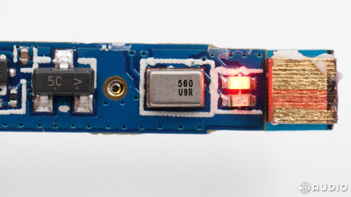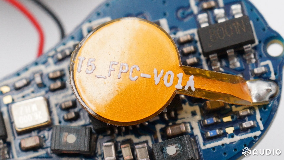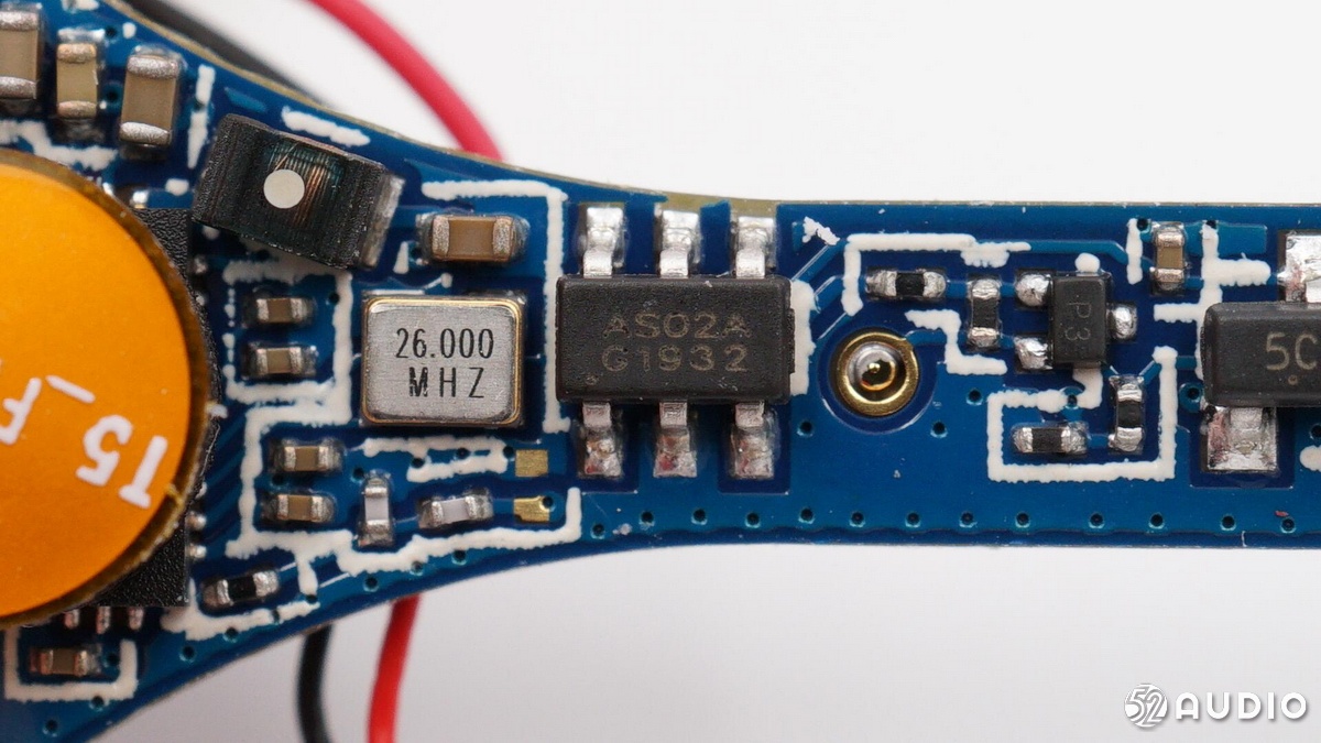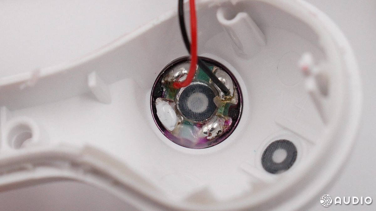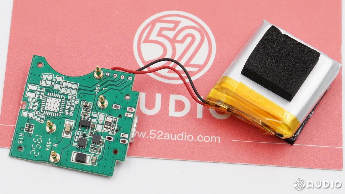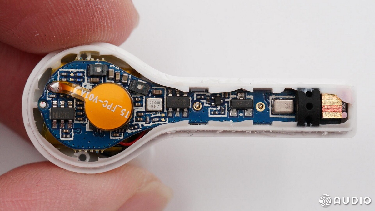耳機(jī)內(nèi)部電路一覽,電池和揚(yáng)聲器通過(guò)導(dǎo)線連接至主板。