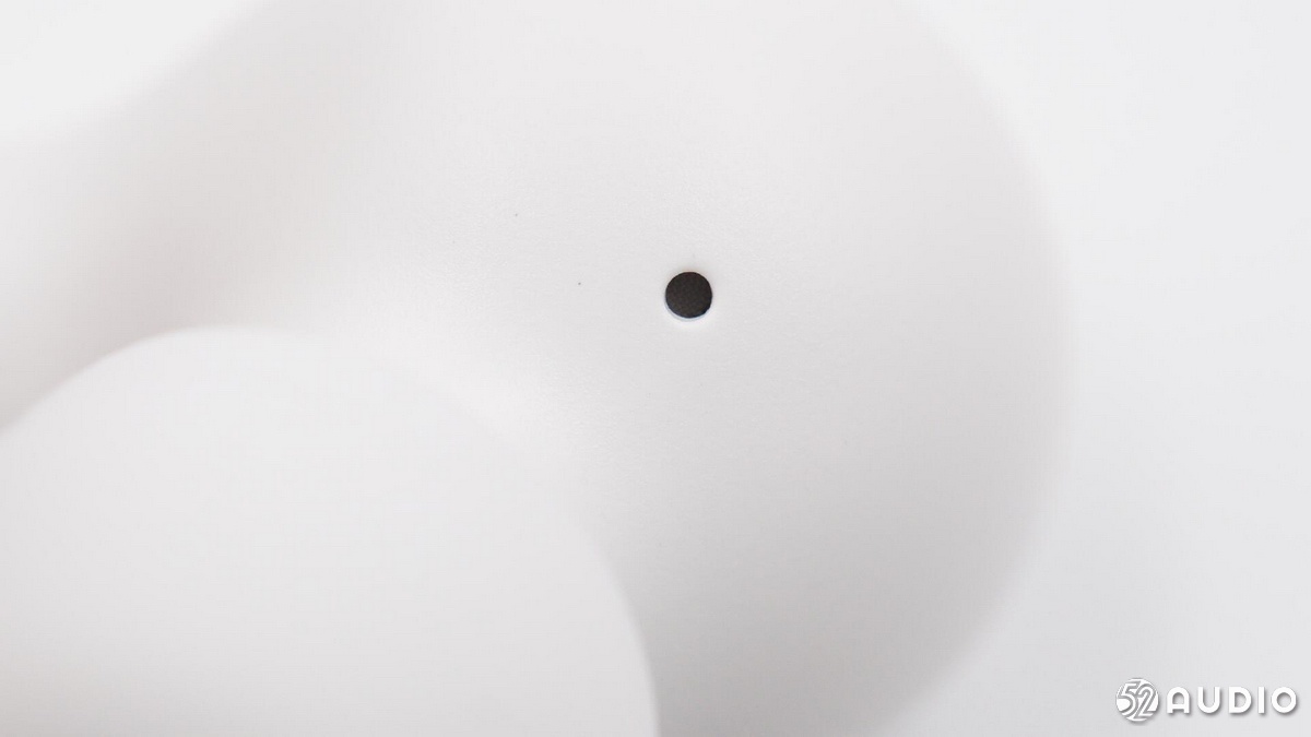 耳機(jī)柄底部特寫(xiě),依次是麥克風(fēng)、指示燈保護(hù)罩和藍(lán)牙天線。