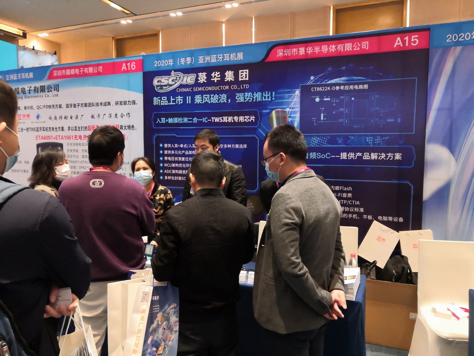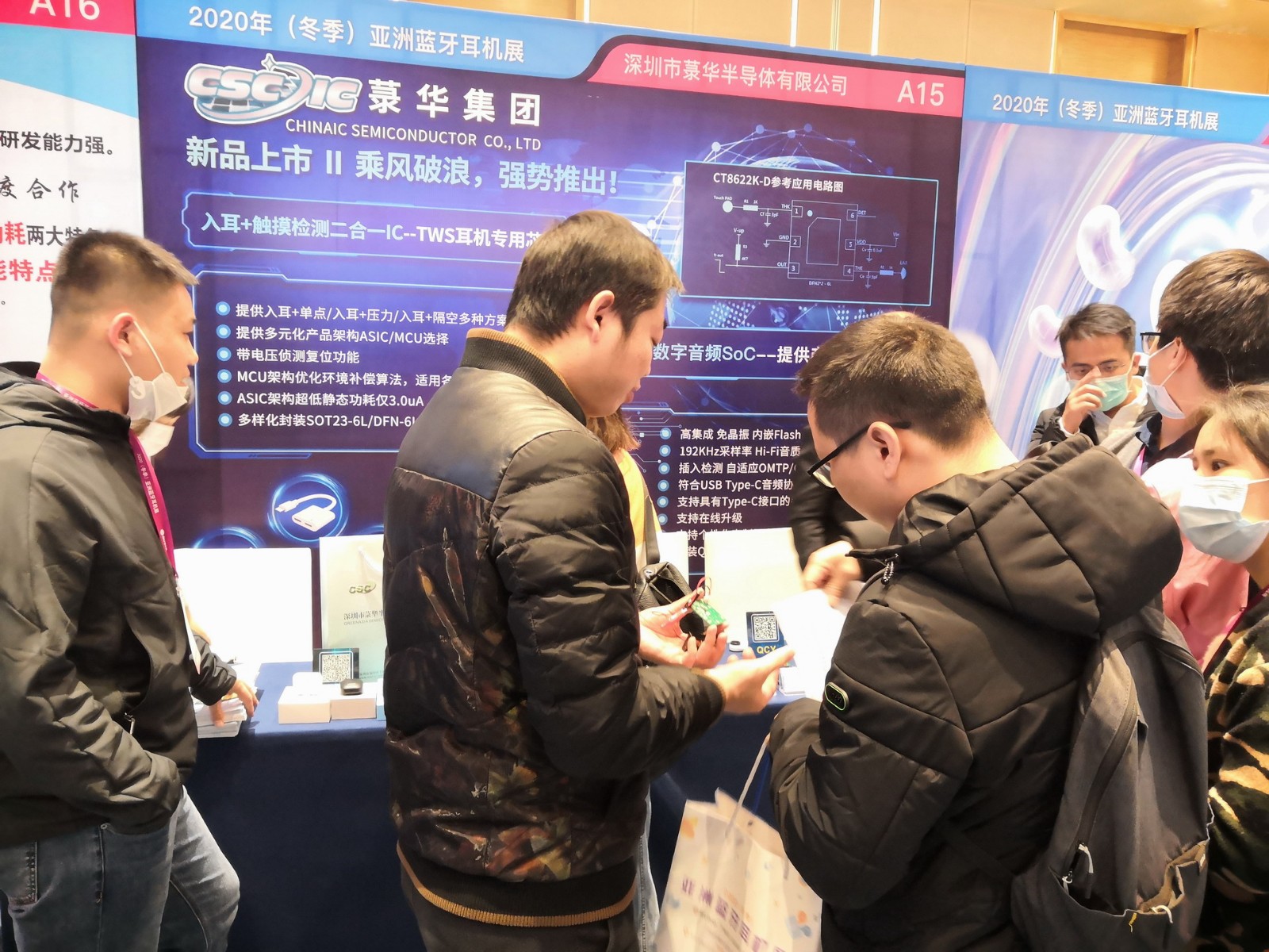 本次展會(huì)上,菉華集團(tuán)為大家展示TWS耳機(jī)觸摸芯片,USB數(shù)字音頻SoC兩大系列產(chǎn)品,其中新產(chǎn)品入耳+觸摸檢測(cè)二合一IC,是重點(diǎn)展示的產(chǎn)品。展會(huì)上,菉華集團(tuán)的業(yè)務(wù)經(jīng)理和工程師,給現(xiàn)場來賓和客戶們?cè)敿?xì)介紹了菉華的產(chǎn)品應(yīng)用及IC的詳細(xì)性能參數(shù),獲得了現(xiàn)場來賓和客戶的高度認(rèn)可!