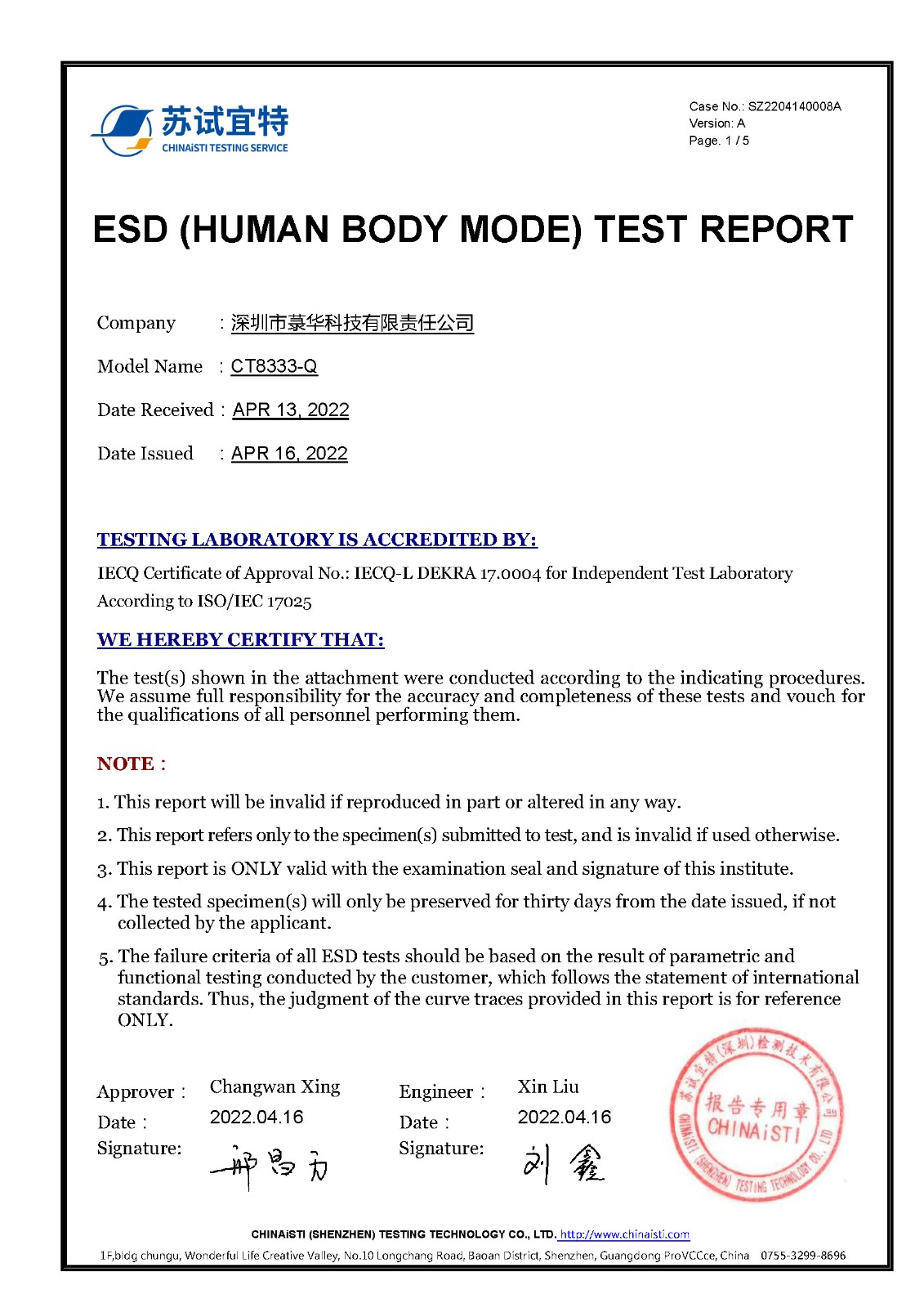 CT8333-Q_SOT23-6_ESD測(cè)試報(bào)告