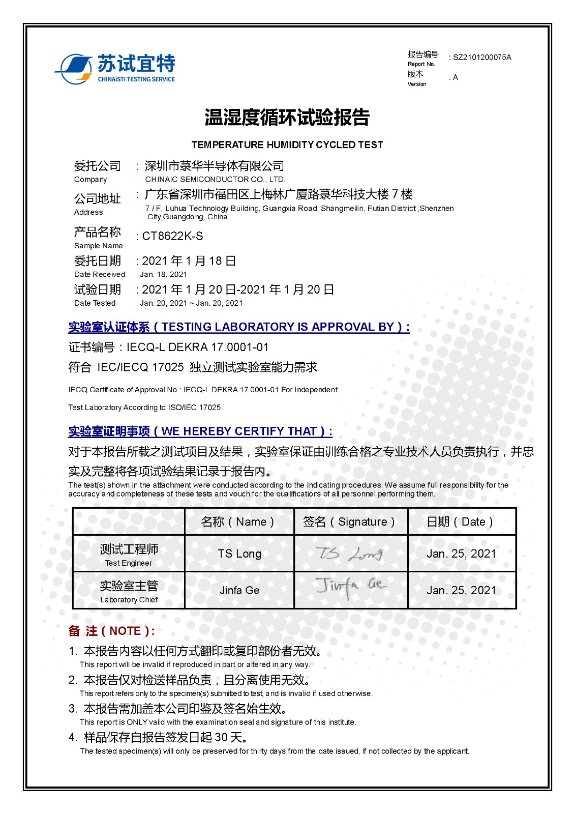 CT8622K-S_溫濕度循環(huán)試驗報告