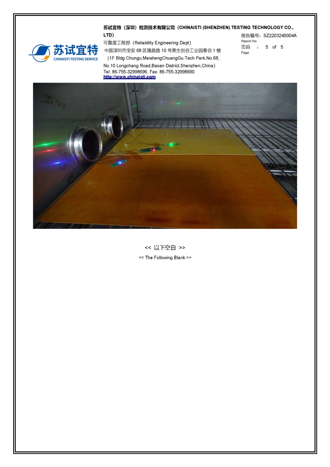 > 溫濕度循環(huán)試驗(yàn)報(bào)告
