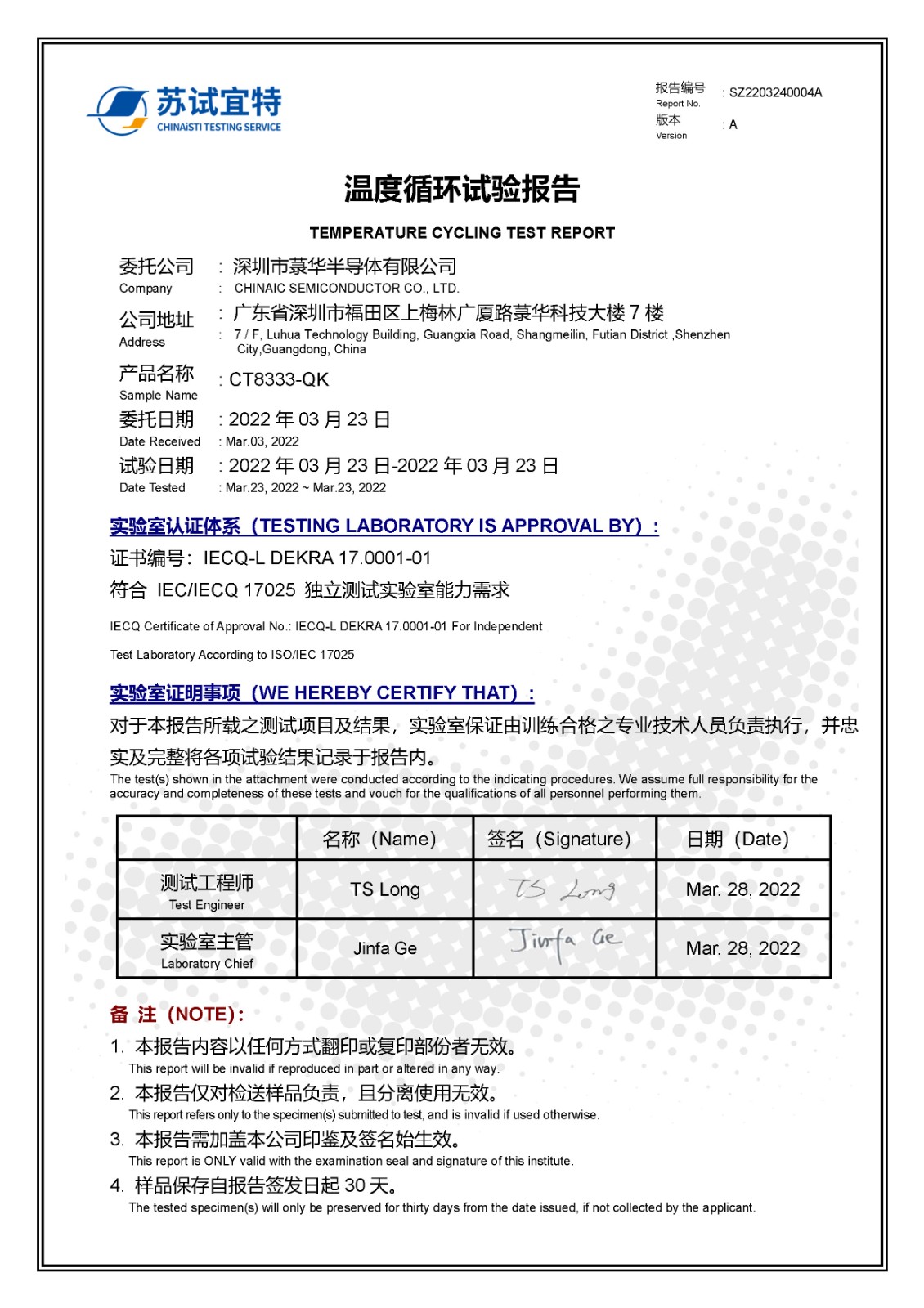 CT8333-QK DFN4_溫度循環(huán)試驗(yàn)報(bào)告