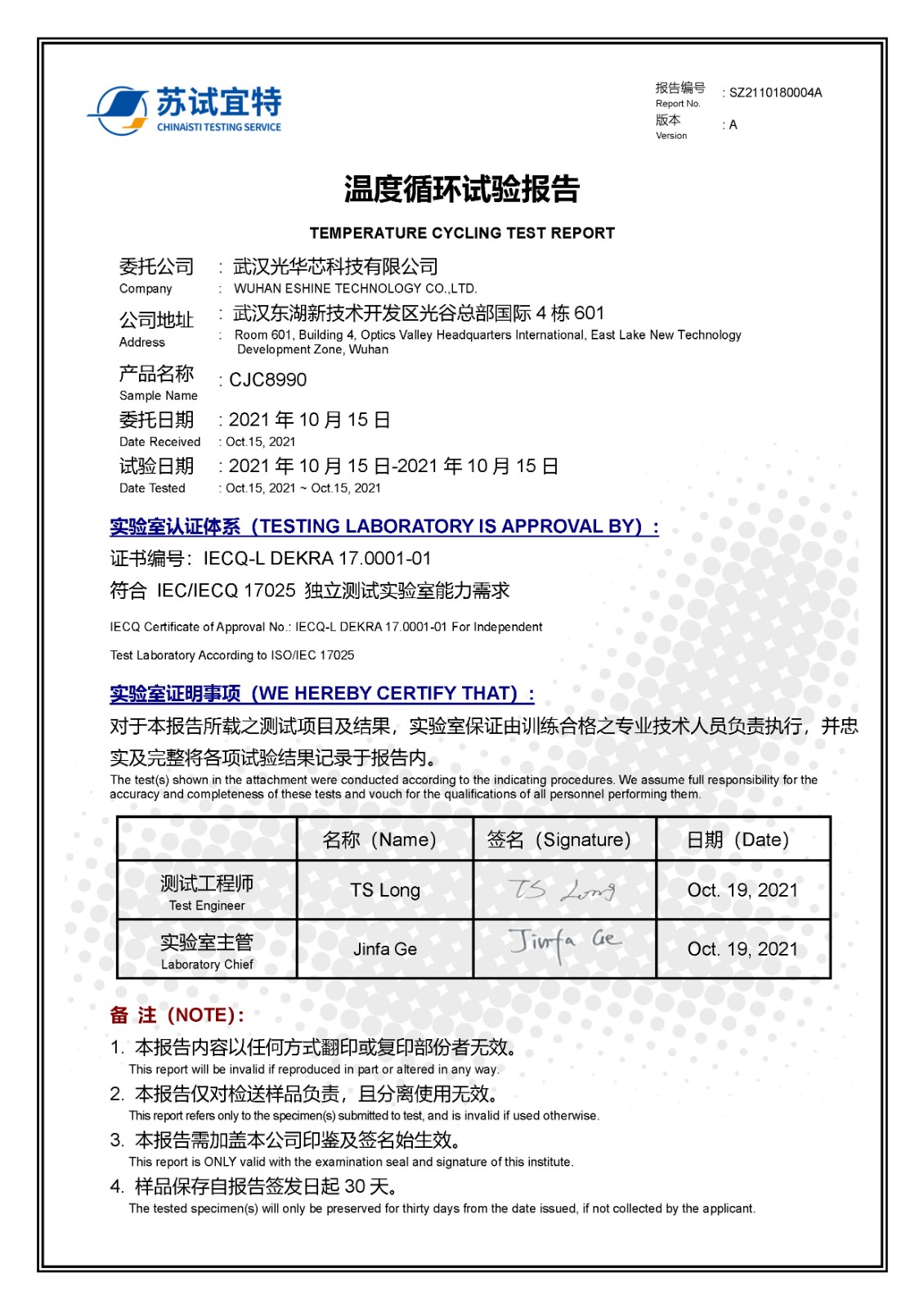 CJC8990_溫度循環(huán)試驗(yàn)報告