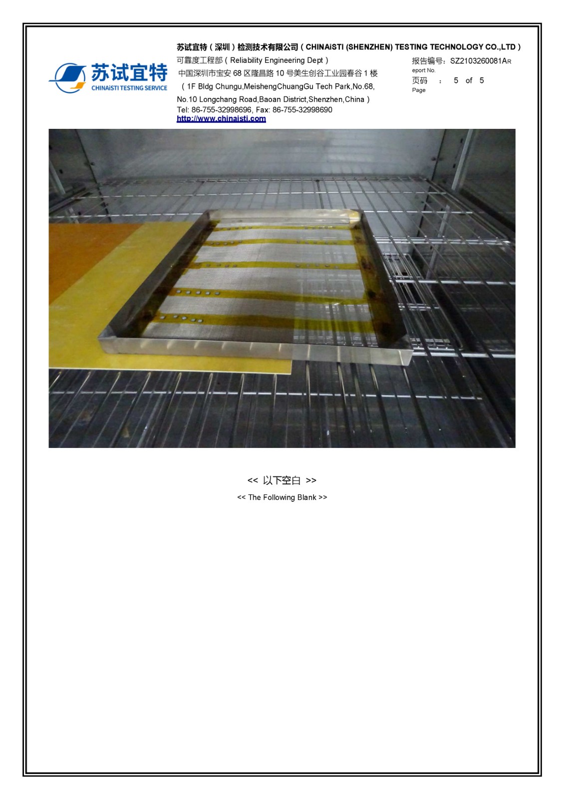 > 高低溫測試報告