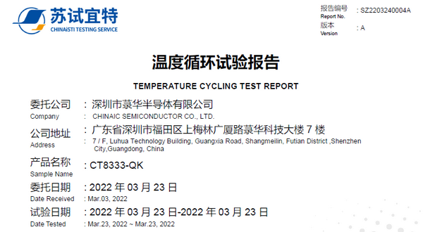 CT8333-QK SOT23-6_溫度循環(huán)試驗(yàn)報告